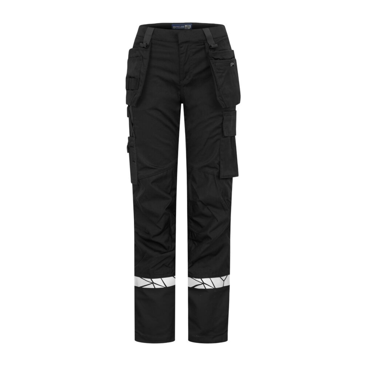 ProJob Arbeidsbukse Dame – slitesterk damebukse med hengelommer, kneputelommer, stretchpaneler og magnetlukking. Kan leveres med logo. Sertifiseringer: ISO 15797, EN 17353.