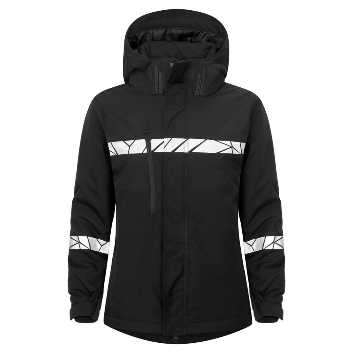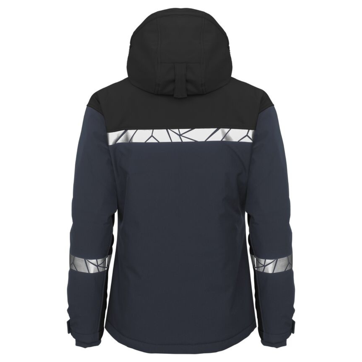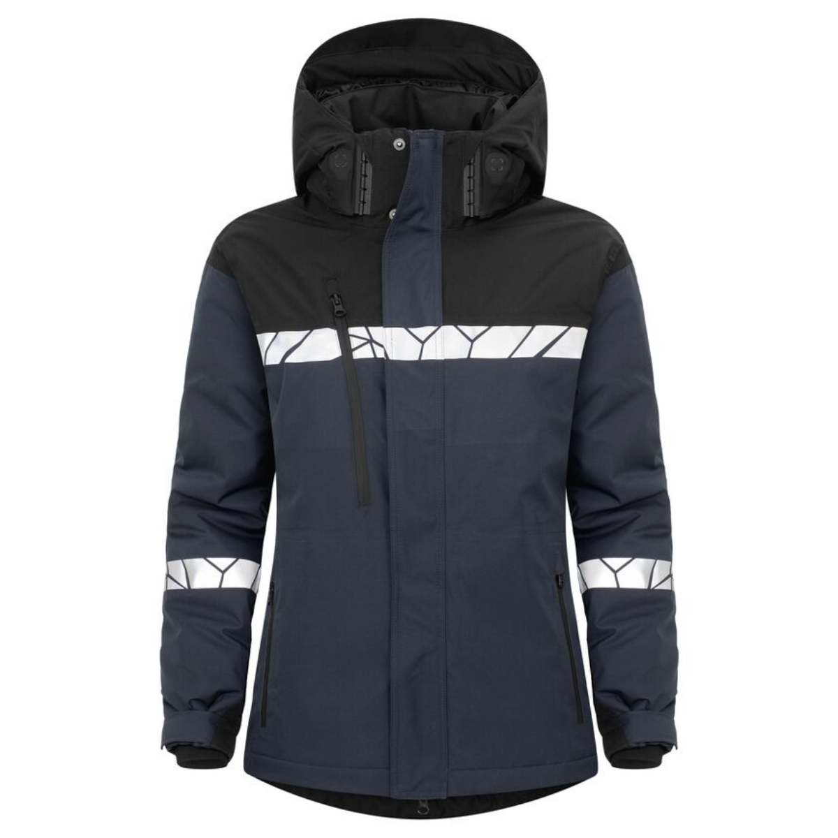 ProJob Fôret Softshelljakke Dame er en vattert, funksjonell arbeidsjakke laget i vind- og vannavvisende softshell-materiale, tilpasset kvinnelig passform. Jakken gir svært god varme samtidig som den holder høy bevegelighet, og er utstyrt med frontglidelås med stormklaff som beskytter mot både vind og lekkasje. Brystlommen på høyre side har innvendig ID-kortfeste, og sidelommer på begge sider med glidelås er fleecefôret for økt komfort på kalde dager. Innerlommer på begge sider med borrelås gir ekstra lagringsplass. Jakken har avtagbar hette som justeres med snøring, forlenget rygg for bedre beskyttelse og justerbare mansjetter med borrelås, inkludert en ekstra innvendig mansjett som holder kulden ute. Midjen kan justeres med snøring for optimal passform. En innsømmet lomme for vaskebrikker gjør jakken kompatibel med industrivask. Plagget er testet i henhold til ISO 15797, sertifisert for økt synlighet EN 17353 og Øko-Tex 100. Kan leveres med trykk eller brodering av bedriftens logo.