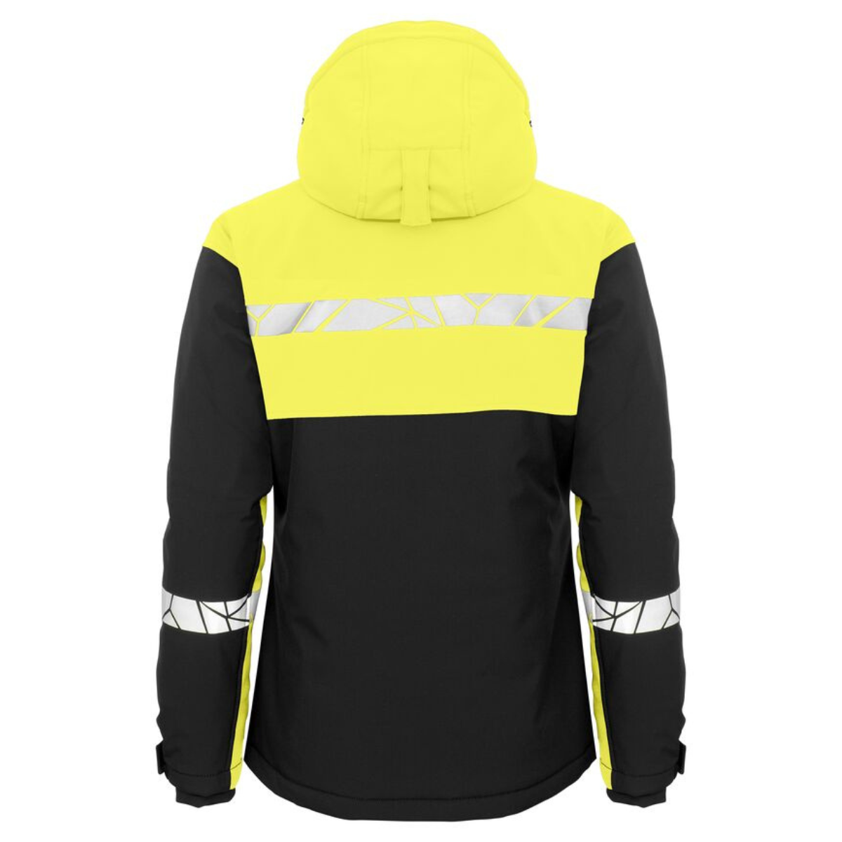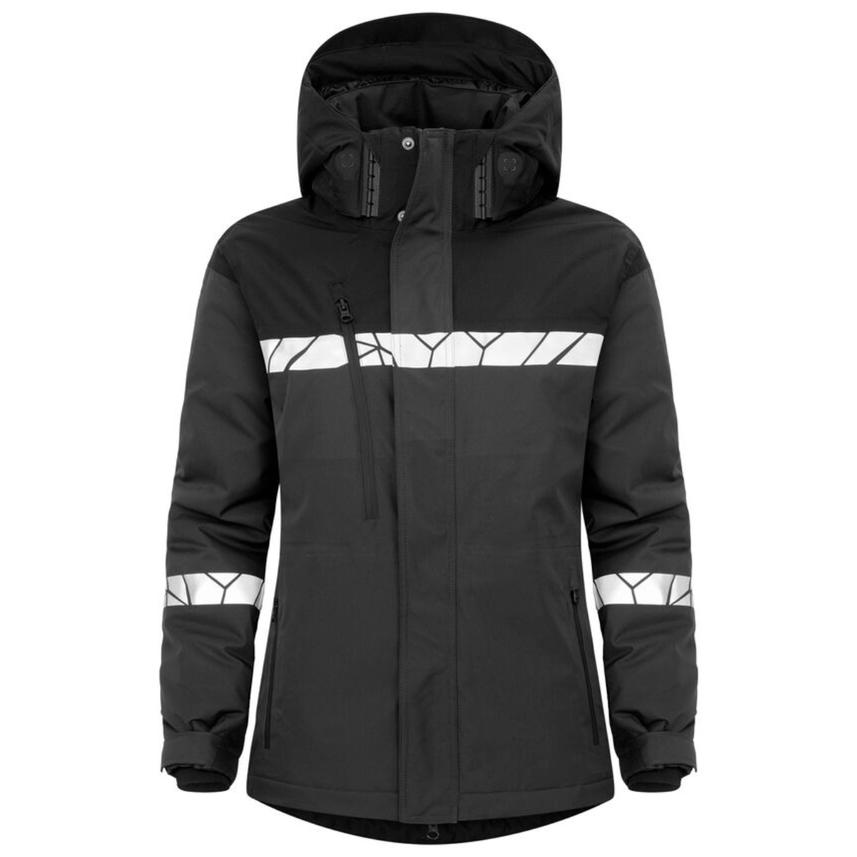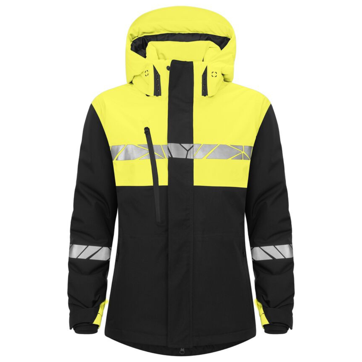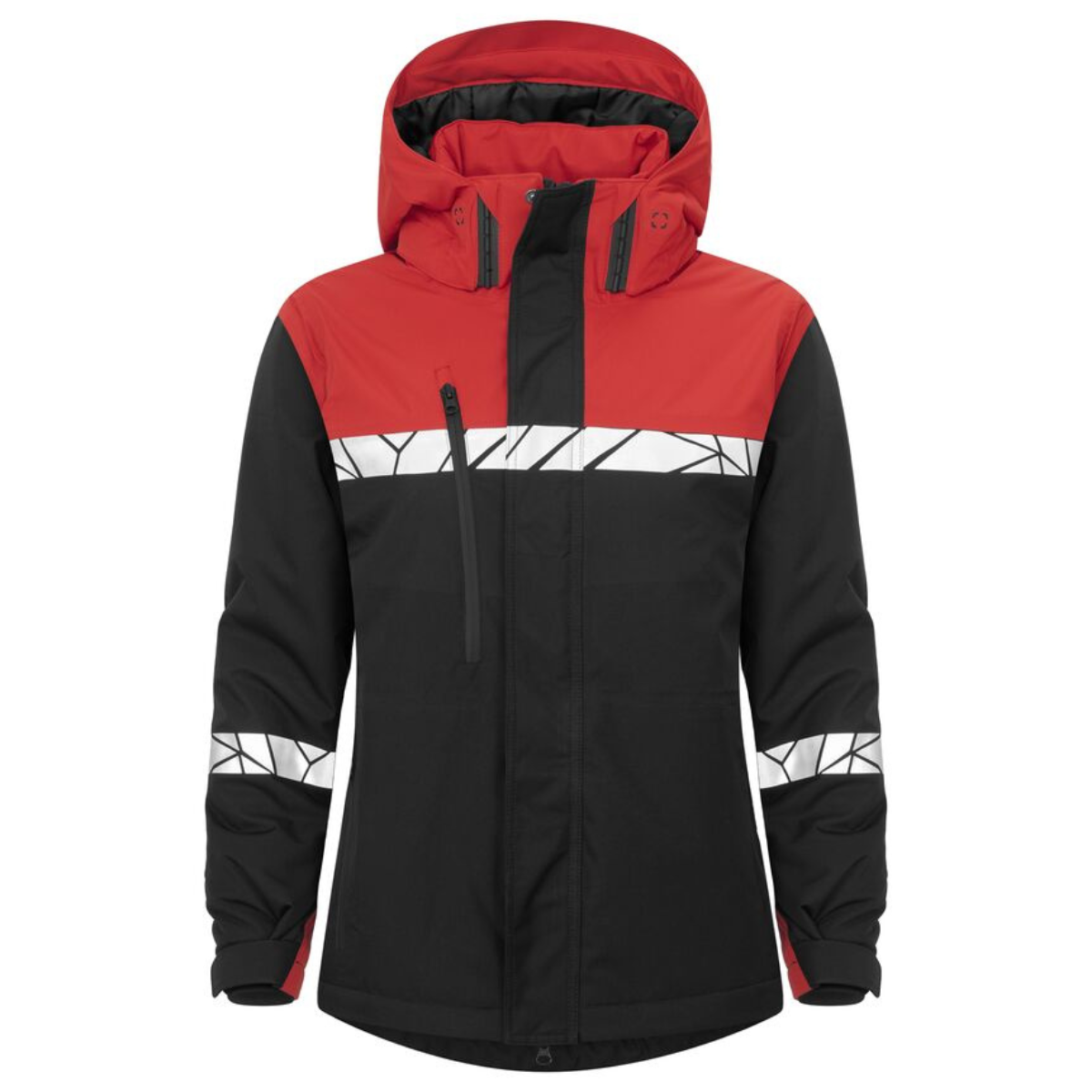 ProJob Fôret Softshelljakke Dame er en vattert, funksjonell arbeidsjakke laget i vind- og vannavvisende softshell-materiale, tilpasset kvinnelig passform. Jakken gir svært god varme samtidig som den holder høy bevegelighet, og er utstyrt med frontglidelås med stormklaff som beskytter mot både vind og lekkasje. Brystlommen på høyre side har innvendig ID-kortfeste, og sidelommer på begge sider med glidelås er fleecefôret for økt komfort på kalde dager. Innerlommer på begge sider med borrelås gir ekstra lagringsplass. Jakken har avtagbar hette som justeres med snøring, forlenget rygg for bedre beskyttelse og justerbare mansjetter med borrelås, inkludert en ekstra innvendig mansjett som holder kulden ute. Midjen kan justeres med snøring for optimal passform. En innsømmet lomme for vaskebrikker gjør jakken kompatibel med industrivask. Plagget er testet i henhold til ISO 15797, sertifisert for økt synlighet EN 17353 og Øko-Tex 100. Kan leveres med trykk eller brodering av bedriftens logo.