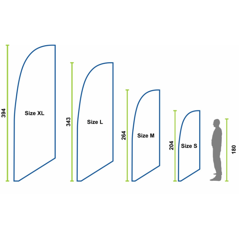 Klassisk beachflagg med mast i aluminium og glassfiber. Slitesterk, B1-sertifisert flaggduk med sterke farger. Vær obs på at vi alltid selger flagg og flaggstang separat, for komplett beachflagg må flaggstang derfor legges til i bestillingen. Vi har valgt å gjøre det på denne måten slik du så enkelt og rimelig som mulg skal kunne bytte budskap på flagget eller erstatte en ødelagt stang uten å være nødt til å bestille begge deler. Det er bra for både budsjettet og miljøet.